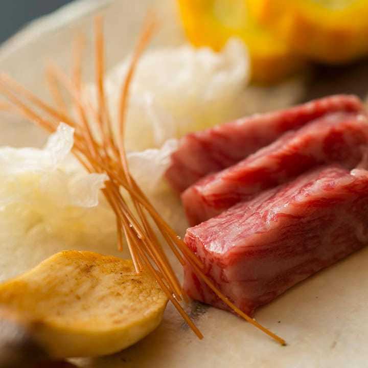 昔村の懐石は、正統和食に熟練の料理人が創意を加えた逸品がお楽しみいただけます。淡路産中心の鮮魚のお造里に黒毛和牛など王道を楽しむ一方、例えばトマトとアボカドの焼き茶碗蒸しや豆乳でまろやかに仕上げたバーニャカウダなど新鮮な驚きも。まずは、月替わりメニューのおまかせコースでどうぞ。