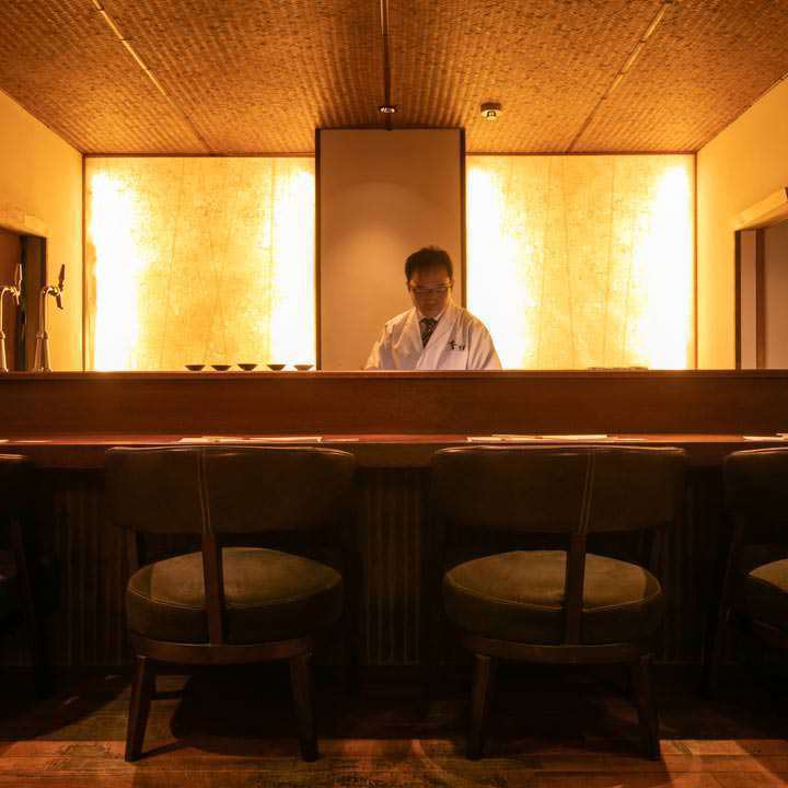 【カウンター席/1~4名様】肘掛け付ゆったり椅子で、ゆったりくつろげます。横並びで大切な方とじっくりお食事をお楽しみください。